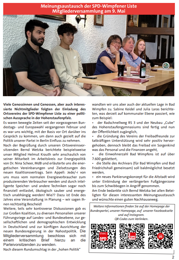 28.04.2026, 19:00 Uhr Stammtisch mit SPD-Ortsverein Bad Rappenau